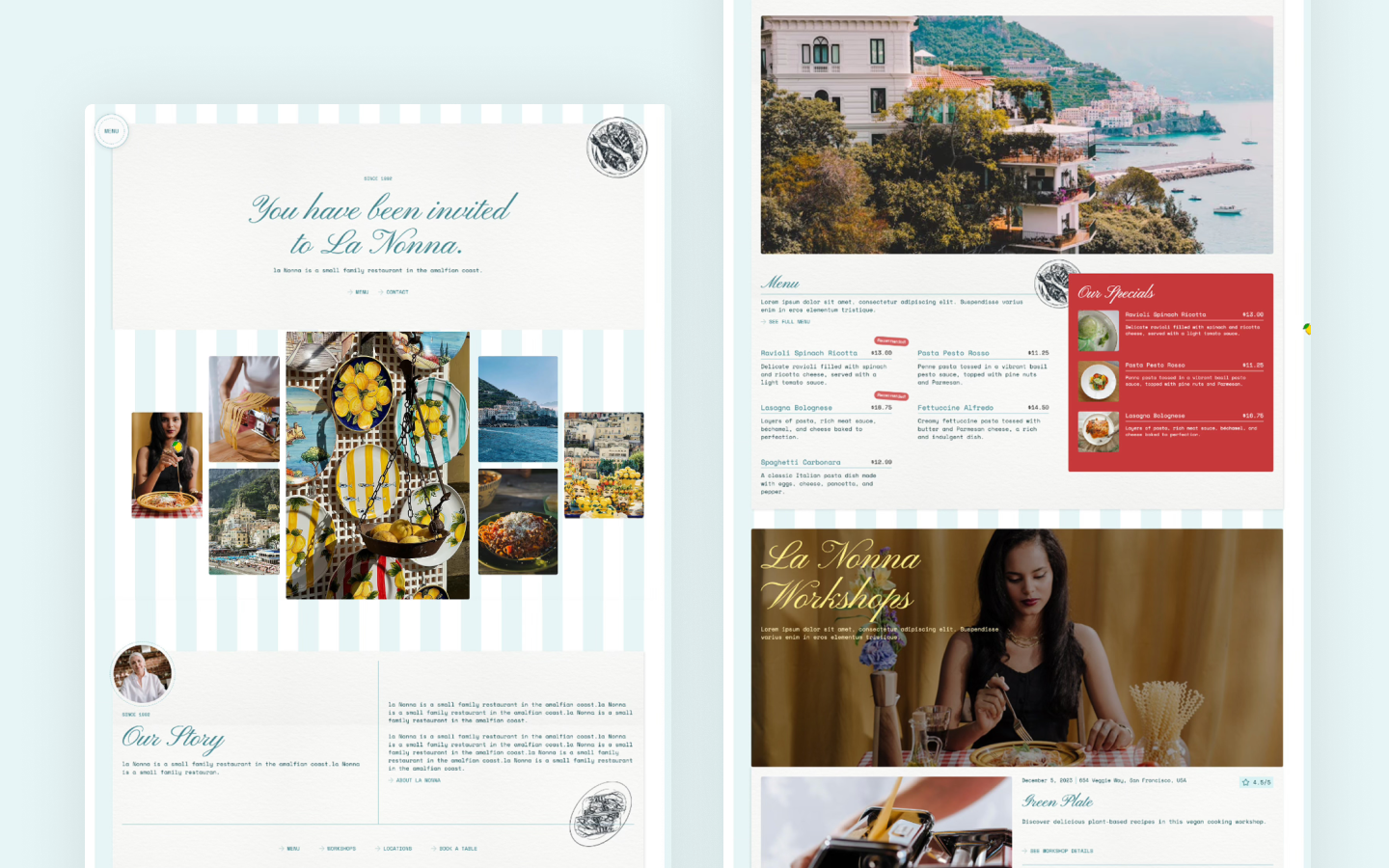 A cozy, tasteful layout inspired by Italian tradition, perfect for highlighting your dishes and atmosphere.